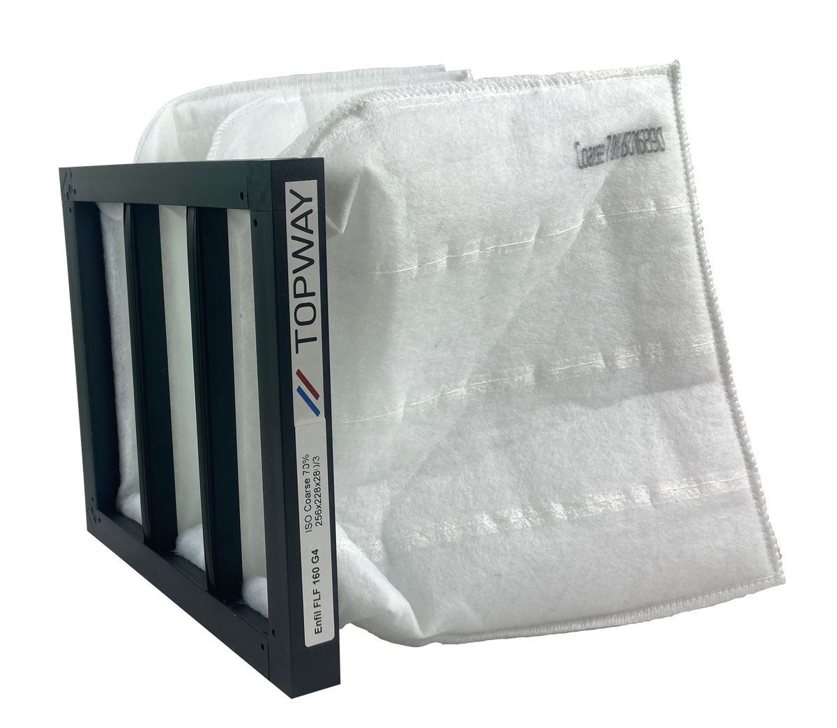 - 1kpl pussisuodatin G4 (ISO Coarse): 256 × 228 × 280 mm (280 mm pussin pituus)